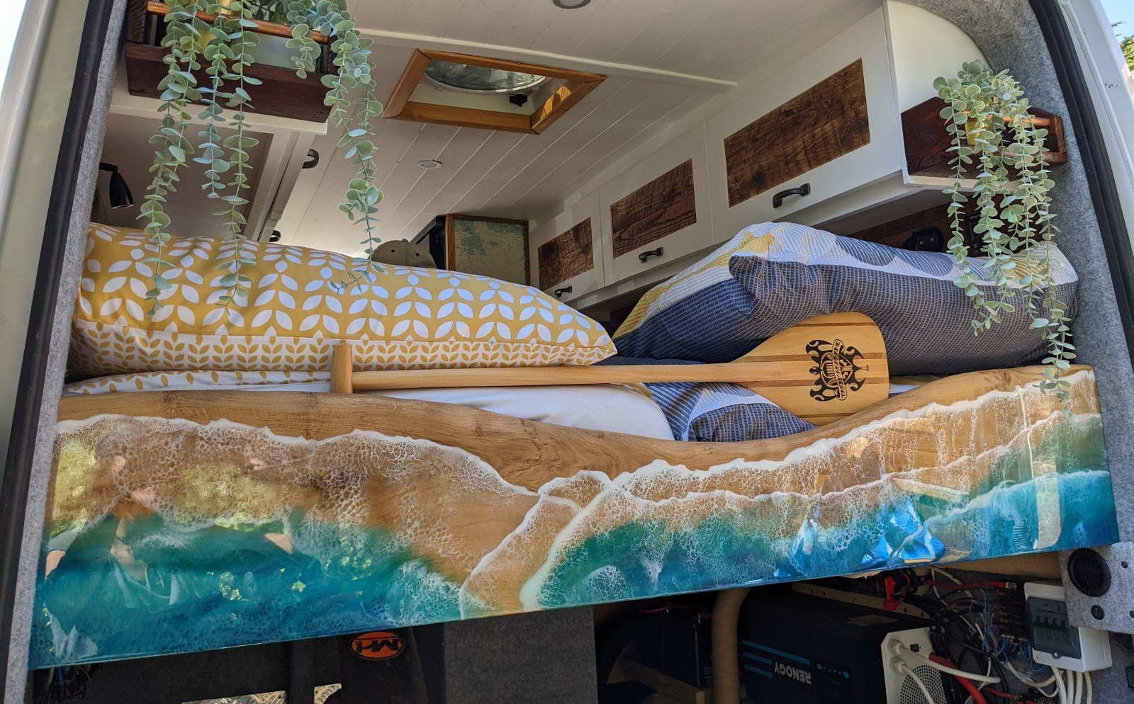 She rose to the challenge and turned my thoughts and ideas into a masterpiece of Art, and using her experience and knowledge she advised and came up with solutions to problems and my quirky ideas. The conversion was better than I could have ever expected, Zoe’s attention to detail is impeccable and what she’s done with the wood is amazing! I’m happy beyond belief with my now Campervan!